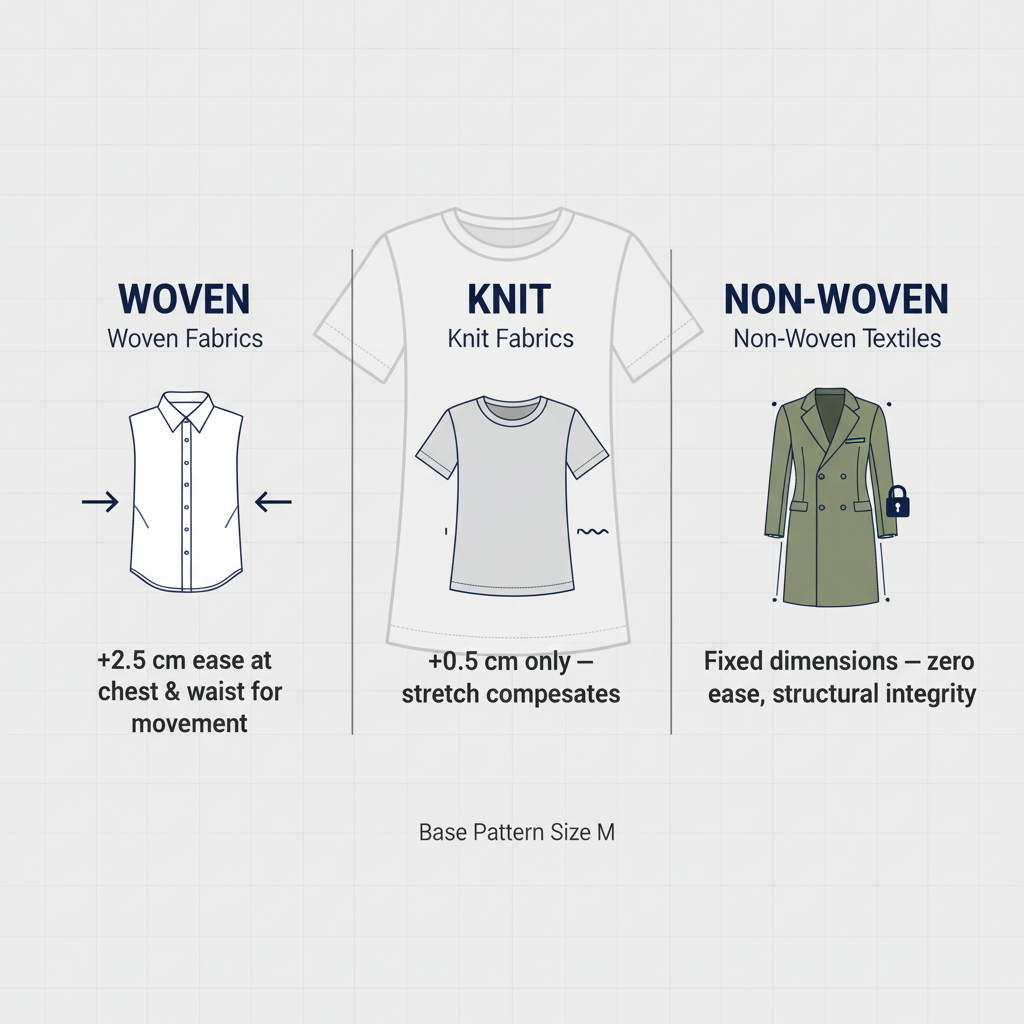 A woven textile requires more ease, while knitted sweaters, t-shirts, or leggings demand tighter control to maintain shape. We analyze each material—from lightweight cotton to stretch spandex, from non-woven fabric to delicate silk—before finalizing grading rules.